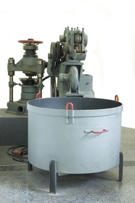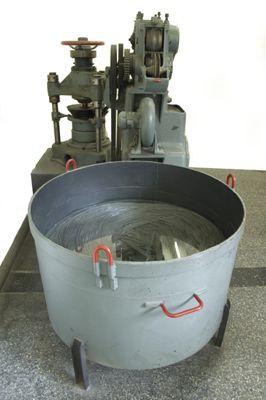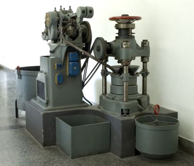 Sistema per la stampa e la calibrazione di pallini da caccia, composta da una macchina stampatrice e una macchina calibratrice.