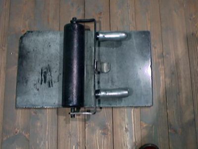 Anticamente per inchiostrare la forma veniva utilizzato un tampone di cuoio imbottito di crine di cavallo o in pergamena trattata per ricevere bene l'inchiostro, con manico in legno. Il tampone veniva ruotato sul piano da inchiostro e poi passato sulla forma. Successivamente vennero utilizzati rulli o tamponi con telaio in metallo, manico in legno o metallo e cilindro da inchiostrare in gomma.