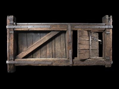 Coppia di porte battenti della conca di San Marco sul naviglio Martesana in Milano
