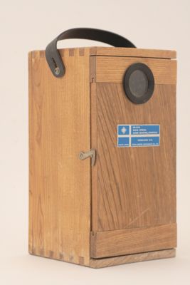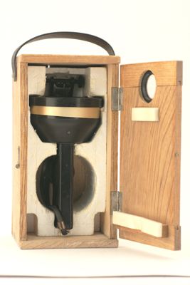 Iscrizioni sulla scatola: "HB-65G" e "Gold special"/"Hand bearing compass" e "Hestabisled 1916" e "Saura Marine Instruments co., ltd" e "Tokyo Japan".