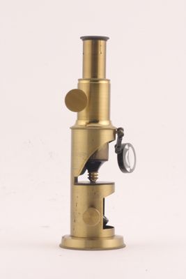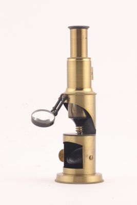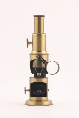 Microscopio ottico con illuminazione a riflessione, con scatola in legno, con un vetrino