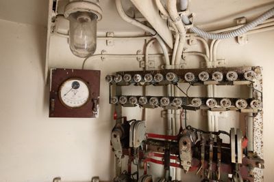 Torretta per faro con scala, stanzetta con quadro di alimentazione, lampada stagna di illuminazione