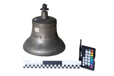 Campana in bronzo con inciso "CONTE BIANCAMANO"