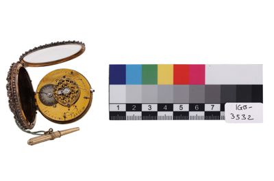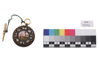 Orologio da tasca in oro, piccola miniatura e pie