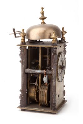 Movimento a due treni contrapposti. Treno del tempo con conoide a budello. Scappamento a verga con pendolino sul retro, originariamente "a coda di vacca", davanti alla mostra. Treno della suoneria con bariletto fisso.