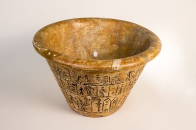 Orologio ad acqua egiziano, riproduzione in gesso XX sec. - originale XV sec. a.C.