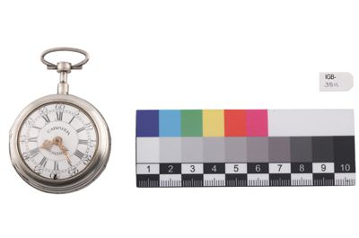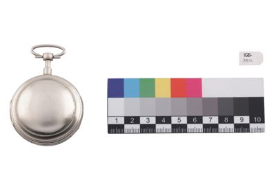 Cassa in tre parti: fondo liscio, cuvette liscia con supporto della campanella e foro di carica, lunetta portavetro. Pendente a disco con collo cilindrico a pressione per l'attivazione della ripetizione e anello ovale spinato.