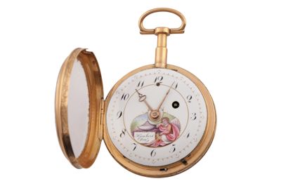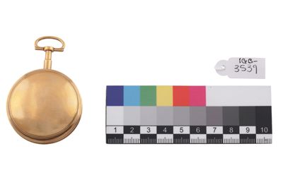 Movimento a platina intera con colonnini cilindrici. Conoide a catena. Scappamento a verga. Ponte bilanciere traforato e inciso a due pidei con controperno in acciaio. Regolazione del tempo a chiavetta su quadrantino. Carica a chiavetta anteriore. Ripetizione con due martelli su campanella. Copripolevere incernierato sul movimento.