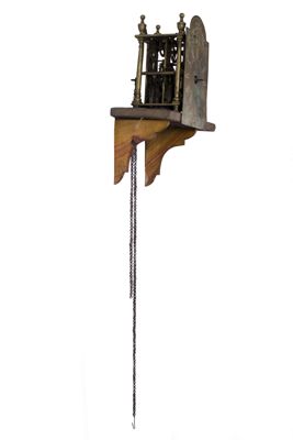 Orologio a lanterna, da mensola. L'orologio si compone di 6 pesi di dimensioni e peso variabili e 3 pendoli di dimensione diversa. L'anello orario presenta le ore in cifre romane e i minuti in numeri arabi. Sono presenti decorazioni vegetali. Non sono presenti le lancette.