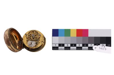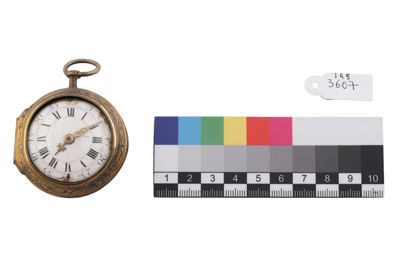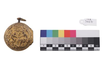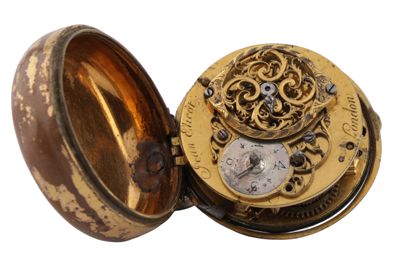 Orologio da tasca, doppia cassa, ottone sbalzato, Jean Elicot London, metà XVIII sec. - Gran Bretagna
