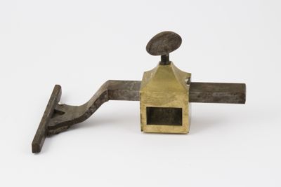 Guida con forma a dado dotata di fori quadrangolari passanti e terminazione piramidale atta a ospitare vite con testa ellittica utile al fissaggio. Il più piccolo dei canali è traversato da barra di ferro a sezione quadrata, ricurva, e terminante con barra in assetto ortogonale. La cavità più grande serve per l'inserimento del pezzo su binario a sezione quadrangolare.