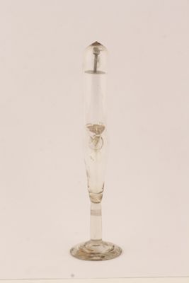 Ad una estremità il tubo esterno si allarga fino a costituire una base rotonda e piatta che può essere utilizzata per l'appoggio in verticale dell'oggetto.