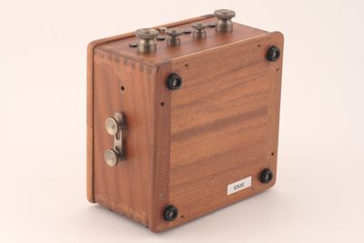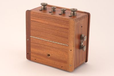 Cassetta in legno con strumento parzialmente assemblato