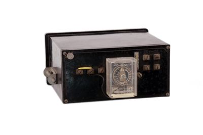 Strumento a forma di parallelepipedo con struttura esterna in plastica. Nella parte frontale è posizionata la scala di misura e regolazione con valori copresi tra 0 e 500 °C, tacche ogni 10 e indicazioni numeriche per 0 - 200 - 400 - 500. E' presente un indicatore a lancetta la cui posizione può essere variata per mezzo di una manopola posta in alto a destra. Sul retro è presente una resistenza variabile, con valori compresi tra 0 e 17 Ohm, un termometro che misura valori tra 0 e 50°C ed alcuni connettori elettrici.