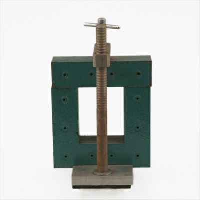 Un supporto in metallo costituisce la base d'appoggio del nucleo e sostiene una vite a morsetto che fissa il giogo sul nucleo, assicurando la chiusura magnetica dell'apparato.