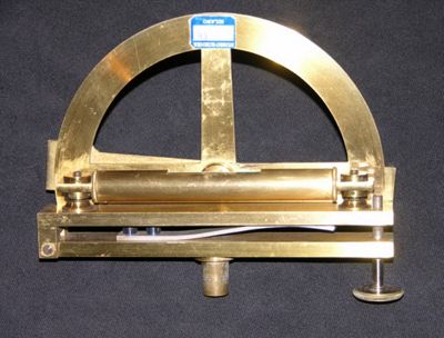 Lo strumento si compone di un goniometro semicircolare con scala graduata che va da 0 a 90 gradi (nel punto di vertice) per poi tornare a 0 gradi dal lato opposto. Su un lato del goniometro è imperniata, in quello che costituisce il centro della circonferenza ideale, una piccola diottra. Sull'altro lato è invece fissata una livella lineare utilizzata per trovare la corretta orizzontalità. Goniometro, diottra e livella sono collocati su una piccola sbarretta metallica; questa è incernerata ad un lato su una seconda piastrina mentre dall'altro lato una vite micrometrica consentiva di effettuare spostamenti verticali fini. Nella parte inferiore della seconda piastra, esattamente nel centro, si trova un piccolo perno; questo era usato per innestare lo strumento su un adeguato supporto. Una lamella di ferro arcuata e posizionata tra le due piastrine fungeva da contromolla.