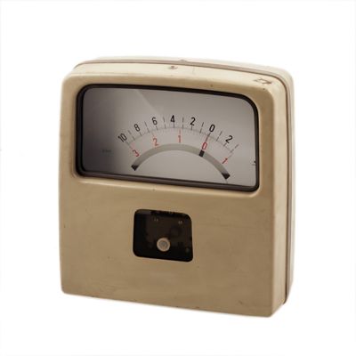 La parte frontale superiore è occupata dal quadrante di misura costituito da una lancetta indicatrice, imperniata nella parte inferiore dello strumento, che indica valori su una doppia scala graduata semicircolare.