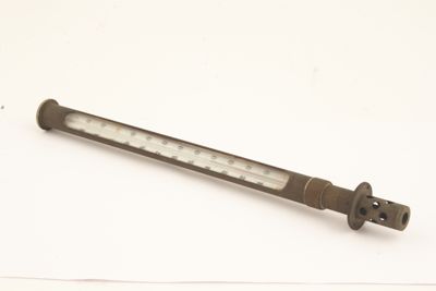 Dal lato superiore dell'apparecchio, affianco all'apertura circolare, affiora un tubo in ottone aperto da un lato; dall'apertura è leggibile la scala graduata di un termometro (scala 0-120 °C). Il tubo con il termometro è staccabile dal bagno di luce.
