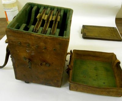 Questa borsa porta-lastre è quella usata da Pio Paganini durante i rilievi effettuati per il progetto di rilevamento generale del territorio dello Stato e della formazione della nuova Carta Topografica d'Italia affidato all'Istituto Topografico Militare (in seguito Istituto Geografico Militare). In particolare per i rilievi delle Cave di Colonnata.