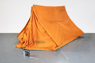 Tenda in sacca da trasporto, numerata con il numero 16.