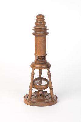 E' formato da un tubo in legno composto da tre parti inserite telescopicamente una dentro all'altra e libere di scorrere; in questo modo si può variare la lunghezza totale del tubo stesso e quindi regolare la messa a fuoco. Il tubo è posizionato verticalmente e tenuto in posizione da tre piccole colonnine lavorate e leggermente divaricanti che terminano su una base di appoggio a sezione circolare. Al centro di questa base è collocato un piccolo supporto orientabile che sorregge uno specchietto per la riflessione della luce verso l'obiettivo del microscopio.