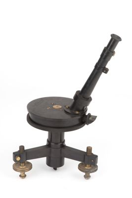 Un piccolo tubo metallico è dotato ad una delle sue estremità di un sistema ottico oculare. L'altra estremità, invece, è avvitata ad una struttura cilindrica a sezione circolare con diametro molto maggiore dell'altezza. Al suo interno è presente un cerchio graduato, non visibile dall'esterno. La scatola può essere posizionata in maniera perfettamente orizzontale grazie a tre piedini a viti calanti sui quali poggia l'intero strumento. Un piccolo prisma posizionato sulla parete della struttura cilindrica consente di inviare una piccola parte di luce al suo interno in modo da illuminare la scala e consentirne la lettura.