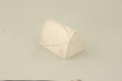 Il modello, una forma sagomata in gesso bianco, rappresenta un cilindro parabolico (superficie del secondo ordine nello spazio) sul quale è tracciata una parabola cubica gobba (curva del terzo ordine nello spazio).