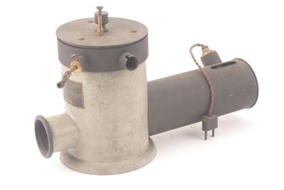 La seconda componenete è la camera di ionizzazione vera e propria costituita da un piccolo cilindro in grafite con una bacchetta in grafite all'interno (elettrodo). La camera (di piccole dimensioni diametro 1,5cm e lunghezza 5cm) è mancante ed era collegata all'elettrometro mediante un cavo di collegamento contenente un filo conduttore isolato che entrava nella sporgenza posta nella parte alta del cilindro dell'elettrometro.