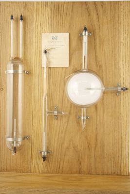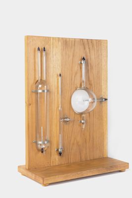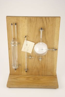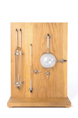 Il compendio è costituito da tre tubi in vetro di varia foggia e dimensione fissati su un pannello in legno di forma rettangolare posizionato verticalmente su una base anch'essa rettangolare e in legno, a formare una "T" rovesciata. All'interno dei tubi è ricavato il vuoto mentre alle estremità sono presenti i contatti elettrici degli elettrodi occorrenti alla generazione, all'interno del tubo, di un campo elettrico e di un fascio di ioni positivi accelerati. Questo fascio, attraverso uno spettroscopio, mostra l'effetto noto come Stark-Lo Surdo.