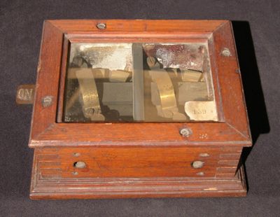 Lo strumento è costituito da una scatola in legno a forma di parallelepipedo; la faccia superiore è però chiusa da un vetro in modo da consentire la visione delle componenti interne dello strumento. All'interno è contenuto un apparato meccanico che può essere comandato manualmente dall'esterno grazie a una piccola sbarra che attraversa tutta la scatola uscendo per una piccola parte da due lati opposti. Lo spostamento della sbarra causa la rotazione contemporanea di due connettori metallici, in ottone e chiaramente visibili dall'esterno, che vanno a chiudere su un conduttore. Su uno dei lati della scatola sono presenti alcuni fori per consentire il collegamento dello strumento ad un circuito elettrico.