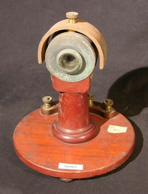 E' costituito da una base di legno circolare poggiante su tre piedi, anch'essi di legno, non regolabili. Sul bordo di questa base sono disposti quattro morsetti in ottone per i collegamenti elettrici. Dal suo centro, invece, si diparte verticalmente un supporto ligneo di forma quasi cilindrica che porta all'estremità una scatola metallica. Anche questa è di forma cilindrica ma è orientata in modo tale che il suo asse di simmetria risulti orizzontale. Al centro della scatola, e quindi nel centro di una delle basi del cilindro che la compone, una finestrella in vetro permette l'osservazione dell'interno ove è posizionato uno specchietto mobile. Il suo spostamento sotto l'effetto del campo elettromagnetico indotto consente la misurazione della corrente che transita nel circuito collegato.