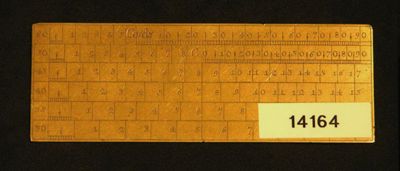 E' costituito da una placchetta rettangolare in ottone finemente incisa. Su entrambe le facce sono riportate alcune scale graduate che permettevano il calcolo rapido di proporzioni e rapporti. Le due scale più esterne corronono in senso inverso tra 0° e 180° permettendo di utilizzare questo strumento anche come goniometro.