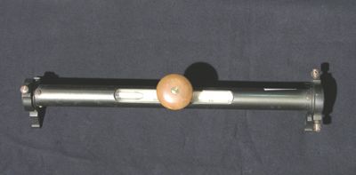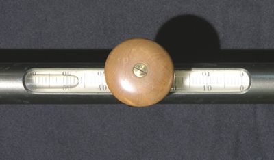 Classica livella lineare dalla forma a tubo. La sua funzione era prettamente ausiliaria a uno strumento ottico di misura. E', infatti, caratterizzata dalla presenza di due piccole staffe di supporto posizionate alle estremità opposte; queste sono sagomate in modo da consentire di appoggiare la livella stessa a cavallo del tubo di uno strumento di misura vero e proprio come un teodolite o un tacheometro. La livella è in metallo mentre la finestra attraverso la quale osservare la posizione della bolla d'aria è ovviamente in vetro. Una manopola in legno posizinata esattamente nel centro permetteva di maneggiare l'oggetto con sicurezza e precisione.