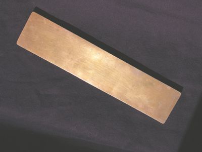 larghezza: 4,6 cm ca.; lunghezza: 21,5 cm ca.; spessore: 0,1 cm ca.; peso: 154 g ca.