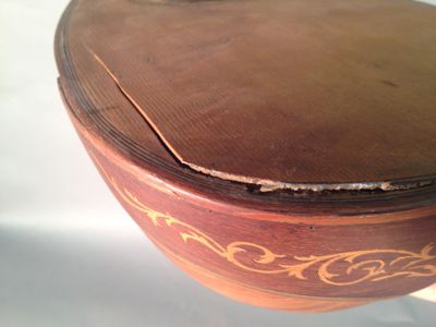 Strumento incompleto realizzato a scopo didattico per mostrare le fasi di costruzione e le caratteristiche tecniche del mandolino.