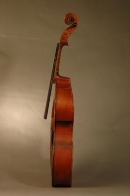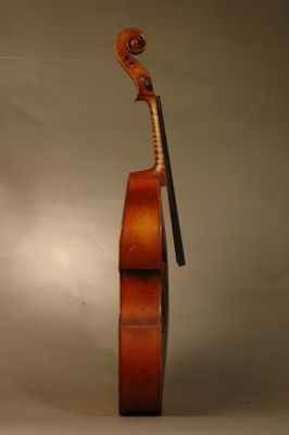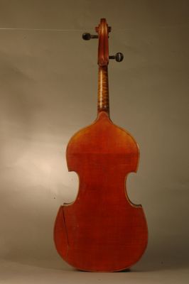 Viola a quattro corde in forma di viola da gamba. La tavola armonica è in un solo pezzo di abete con due fori armonici a forma di "effe". Il fondo, in un solo pezzo di acero, è piatto e piegato nel suo terzo superiore. Il filetto è in acero ed ebano. Le fasce sono in acero. Il manico, con testa a forma di riccio, è in acero. Nel cavigliere sono rimasti solo due piroli in ebano. La tastiera è in ebano. All'interno della cassa armonica sono posizionate due catene: una verticale nel lato sinistro della tavola e una orizzontale nella parte inferiore. Nel fondo è presente un rinforzo orizzontale per l'anima e per la piegatura.