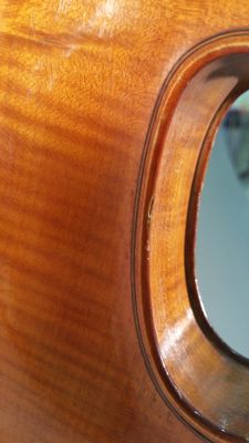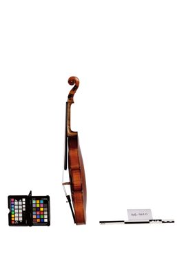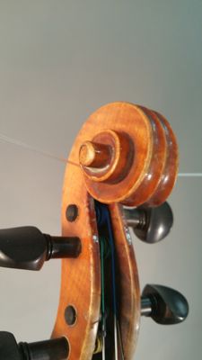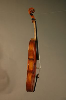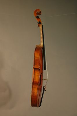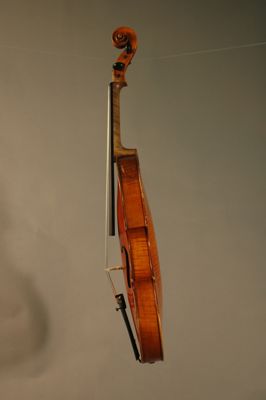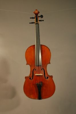 Strumento su modello Stradivari. La tavola armonica è in due pezzi di abete. Il fondo è in due pezzi di acero marezzato con venatura convessa. Le fasce sono in acero. La tastiera, i piroli, i capotasti, il bottone e la cordiera sono in ebano. Il filetto è in ebano e acero. Il manico, non originale, è in acero con riccio innestato. Il ponticello, firmato Leandro Bisiach, è in acero. La vernice, probabilmente ad alcool, è di colore giallo arancio. All'interno della cassa armonica è posizionata una catena longitudinale. Lo stile, in generale, è preciso e piacevole con bombature che richiamano quelle dei liutai classici cremonesi.
