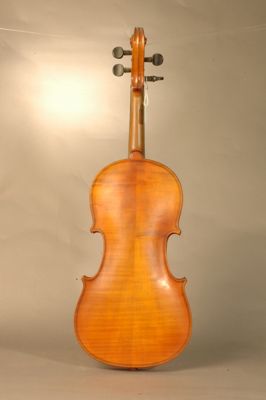 Strumento di fabbrica su modello Stradivari. La tavola armonica è in due pezzi di abete. Il fondo è in due pezzi di acero. Le fasce sono in acero. Il filetto sia nella tavola sia nel fondo è dipinto. La tastiera, i capotasti, il bottone e i piroli sono in legno morbido dipinto di nero. La tastiera è più larga del manico. Il lavoro sul riccio della testa è dozzinale.