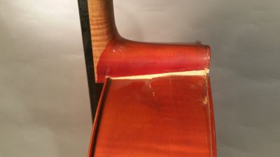 Strumento di fabbrica costruito con legno di faggio impiallacciato. La tavola armonica è impiallacciata in abete mentre il fondo, le fasce e il manico sono impiallacciati in acero. I filetti sono in acero e legno tinto. La tastiera, i piroli e capotasti sono in legno tinto di nero.