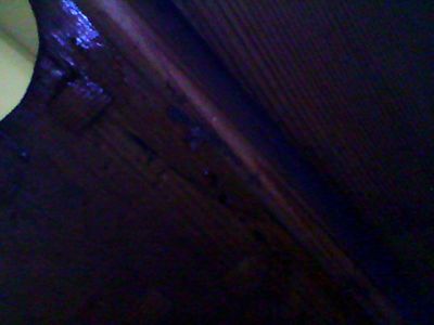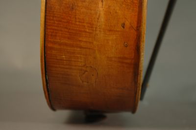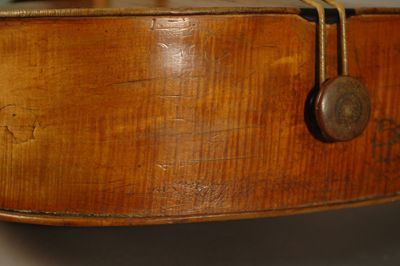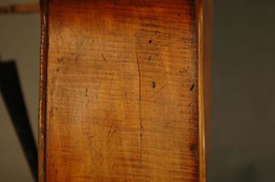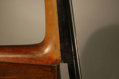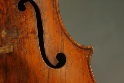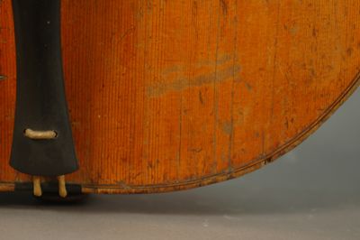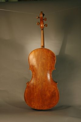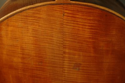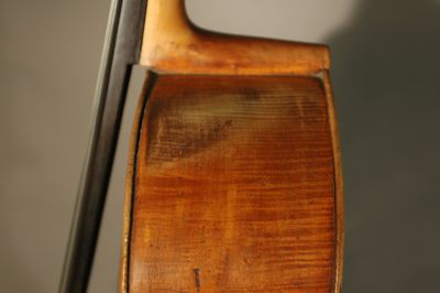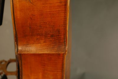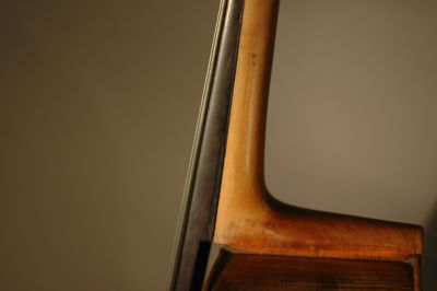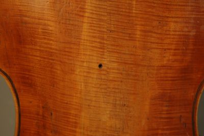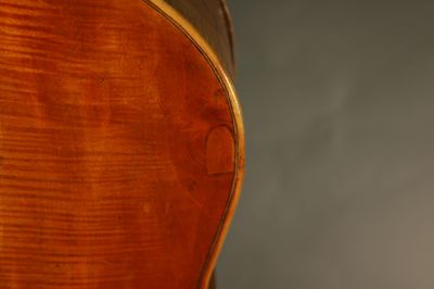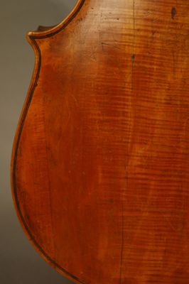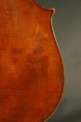 La tavola armonica è in abete a venatura, in alcuni punti, molto fine. Il fondo e le fasce sono in acero marezzato. Il manico e il riccio, originali, sono in acero. La vernice è a olio o ad alcol. La tastiera, non originale ma di fattura uguale all'originale, è in ebano. Non sono presenti elementi decorativi particolari oltre al riccio nella testa e il filetto, in acero ed ebano, intorno ai bordi della tavola armonica e del fondo.
