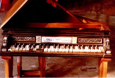Lo strumento consiste in una tastiera probabilmente fiamminga o anche tedesca della fine del '600, presumibilmente appartenuta ad un organo (dato il tipo di meccanica a sospensione) e sistemata in un mobile moderno che nulla ha a che fare con la tastiera e che รจ inoltre privo di somiere, tavola armonica e meccanica.