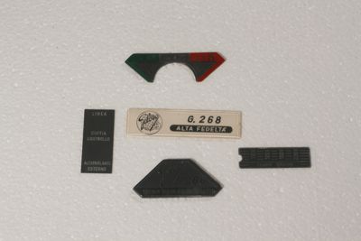 Era venduto con alcun accessori (ora mancanti): due microfoni Geloso/ una bobina n. 108/ LP con 260 m di nastro magnetico/ una bobina n. 108 vuota di diametro mm 127 di materia plastica trasparente/ una custodia-borsa originale.