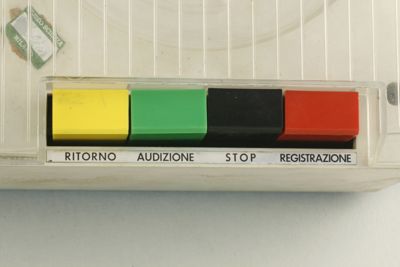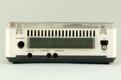Magnetofono costituito da una struttura in plastica bianca e grigia, che ospita all'interno le componenti elettroniche. La parte anteriore è occupata da una mascherina in metallo traforato, che copre l'altoparlante all'interno. Le bobine sono collocate nella parte superiore dell'apparecchio, riparate da un coperchio in plastica trasparente. Sul lato superiore sono inoltre collocati tutti i comandi del magnetofono: sul bordo destro si trovano quattro pulsanti in plastica di colore giallo, verde, nero e rosse, rispettivamente per riavvolgimento, riproduzione, arresto e registrazione del nastro; nella parte in basso a sinistra sono posti due selettori a manopola per il tono e il volume, un contatore azzerabile del nastro a tre giri e un indicatore elettrodinamico del livello di registrazione; sul bordo sinistro è infine collocata la levetta in plastica rossa per l'avanzamento rapido e il caricamento del nastro. Tra le due bobine si trova il commutatore per il cambio di velocità del nastro a 9,5 - 4,75 - 2,38 cm/sec. Sul lato posteriore dell'apparecchio si trovano la maniglia in plastica grigia per gli spostamenti, tre boccole per il collegamento dell'amplificatore/cuffie, dell'altoparlante e del microfono, un supporto bipolare per l'allacciamento alla rete e infine una presa a cinque poli per l'attacco dei comandi a distanza. Sul fondo dell'apparecchio, infine, si trova un vano contenitore per il microfono, mentre i cavi di alimentazione possono essere costuditi in un apposito scomparto della valigetta; il magnetofono infatti è accessoriato con una valigetta rigida in cartone e legno, rivestita in plastica. L'apparecchio inoltre è corredato con un cavo elettrico per l'alimentazione e un microfono dinamico a capsula, in plastica bianca e grigia.
