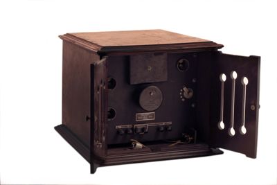 THIS APPARATUS IS COVERED BY UNITED STATES PATENTS, / UNDER WHICH THE MANUFACTER HAS THE RIGHT TO SELL / ONLY FOR CERTAIN SPECIFIC USES. SAID APPARATUS AND / ITS SEVERAL COMPONENT PARTS ARE SOLD AND LICENSED / FOR USE ONLY AS A WESTERN ELECTRIC LOUD SPEAKING / TELEPHONE OUTFIT AND NOT FOR CONNECTION WITH ANY / PUBLIC SERVICE WIRE TELEPHONE OR TELEGRAPH SYSTEM (documentaria)