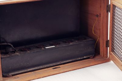L'amplificatore a valvole รจ sistemato all'interno di un mobiletto in legno, provvisto di un'anta apribile dotata di grata in metallo. All'interno del mobile si trova il circuito elettrico formatodall'amplificatore a cinque valvole, due bobine elettromagnetiche e due scaricatori di sicurezza a 3000 volt. All'esterno del mobile, sul lato destro si trovano un supporto bipolare per il collegamento all'altoparlante e la presa a terra; in corrispondenza delle uscite sono collocati dei cartoncini iscritti, ricoperti da una pellicola di celluloide. Sul lato sinistro si trovano tre coppie di fori, di cui una circondata da una piastrina in legno, simili a supporti bipolari.
