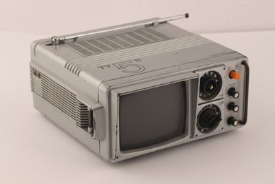 Televisore portatile in plastica grigio chiaro. Il piccolo schermo da 5 pollici è collocato nella parte sinistra della parete frontale. Accanto si hanno un selettore per i canali VHF (da A ad H2) con regolazione fine, una manopola per i canali UHF (da 21 a 68). Si hanno inoltre un tasto di accensione arancione e tre manopole per la regolazione di volume, contrasto, luminosità.