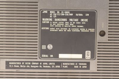 MANUFACTURED BY VICTOR COMPANY OF JAPAN LIMITED 12,3 Chome, Moriya-cho, Kanagawa-Ku, Yokohama, 221JAPAN MANUFACTURED AT YOKOHAMA PLANT MADE IN JAPAN (commerciale/ documentaria)