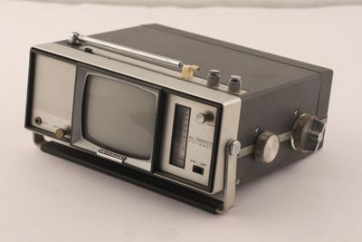 Dispositivo che racchiude un televisore e un radioricevitore. La scocca del dispositivo è in plastica grigia con maniglia in metallo per il trasporto utilizzata anche come piedistallo per posizionare in maniera inclinata l'apparecchio e facilitarne l'uso.