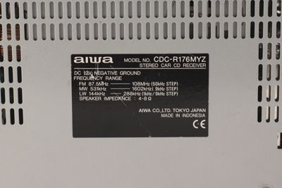 MODEL NO. CDC - R176MY2 STEREO CAR RECEIVER DC 12V NEGATIVE GROUND FREQUENCY RANGE FM 87,5MHz - 108MHz MW 531kHz-1602kHz LW 144kHz - 288kHz SPEAKER IMPEDANCE 4-8 Ohm (commerciale/ documentaria)