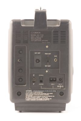 Sul retro si hanno le viti per la regolazione di brightness, contrast, vertical hold, horizontal hold, delle prese perext ant, cuffie, alimentazione 220V, alimentazione con batteria 12V, un selettore rod ant/ext ant.